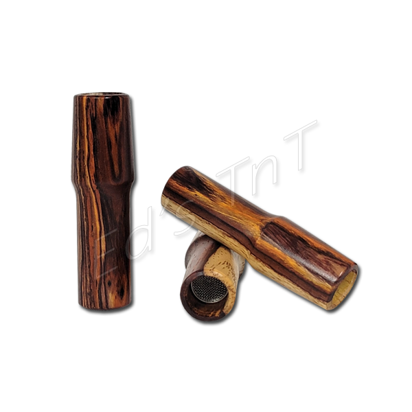 Made from Cocobolo at 2 1/2"L with the same bore as the longer stems as well as the glass. Are tapered to 19mm at the mouth piece for your favorite water tool or can be used easily as a stem alone.