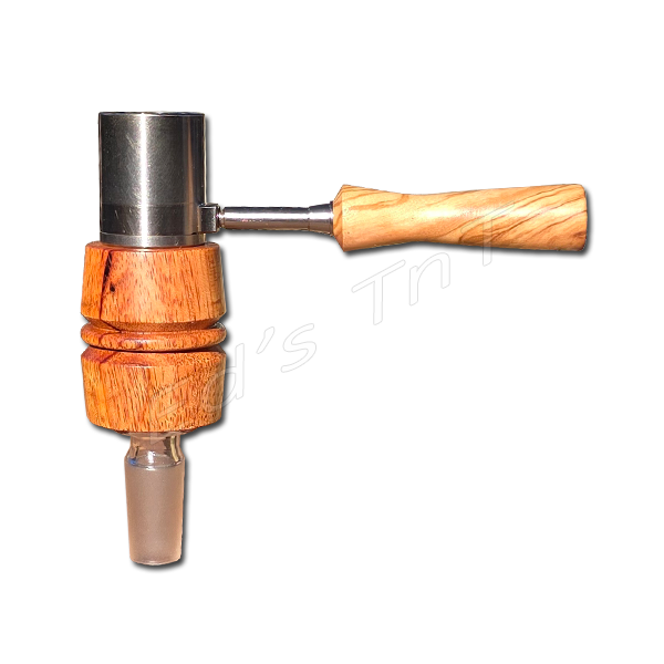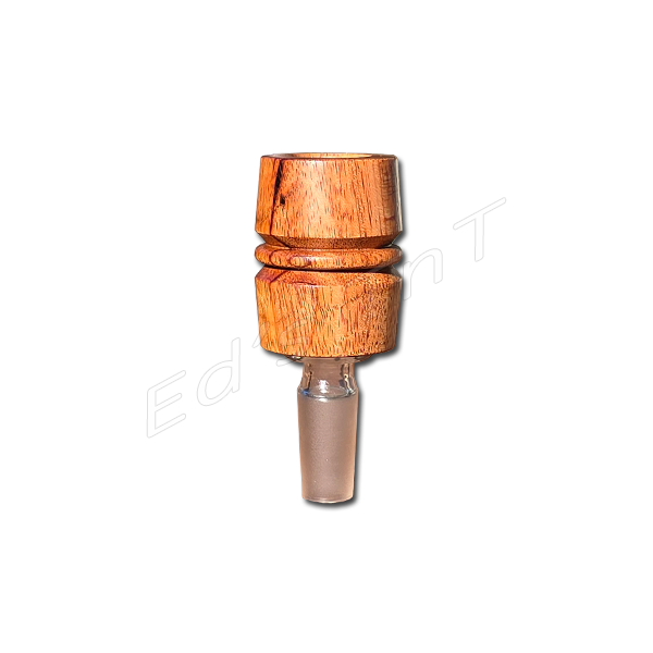 At 1.5"H x 1.25" OD these are solid and robust. Has a large upper cavity half as deep upper side with a slightly smaller center bore. Opposite end bored a little over with an inner groove oring installed to retain the glass joint within. Made from South American Tigerwood, will vary in grain pattern. Its very dense having used it for a few other products its become a great candidate for this purpose.